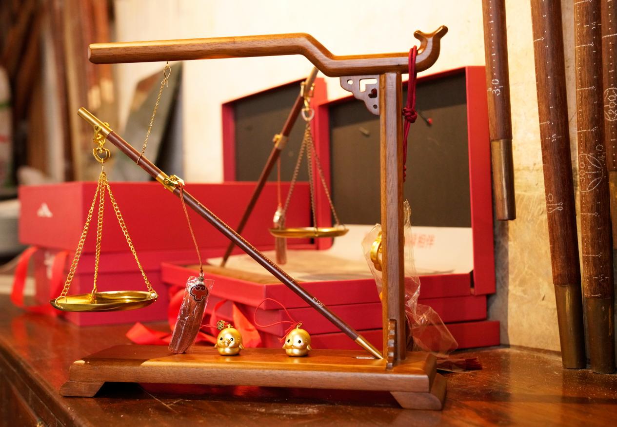 Xia is quite particular about the materials he uses. In the past, steelyards were typically made from local chestnut wood, but these days, Xia prefers to use another wood which has excellent hardness and fine grain, and, when treated with lime, it takes on a natural red color, which is the wood's true hue and won't fade.