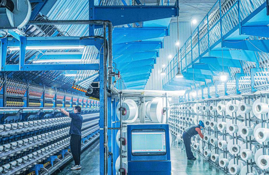 Photo shows an intelligent workshop of a home textile company in Suqian, east China's Jiangsu province. (Photo/Xu Jianghai)