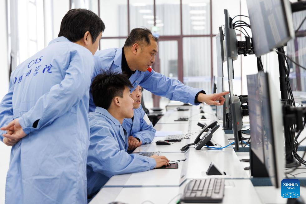 Staff members monitor the operation of the satellite data receiving system at the Mohe Station of the China Remote Sensing Satellite Ground Station in Mohe, northeast China's Heilongjiang Province, on Jan. 24, 2026. (Xinhua/Jin Liwang)