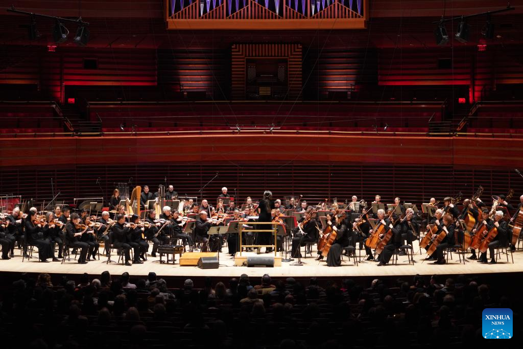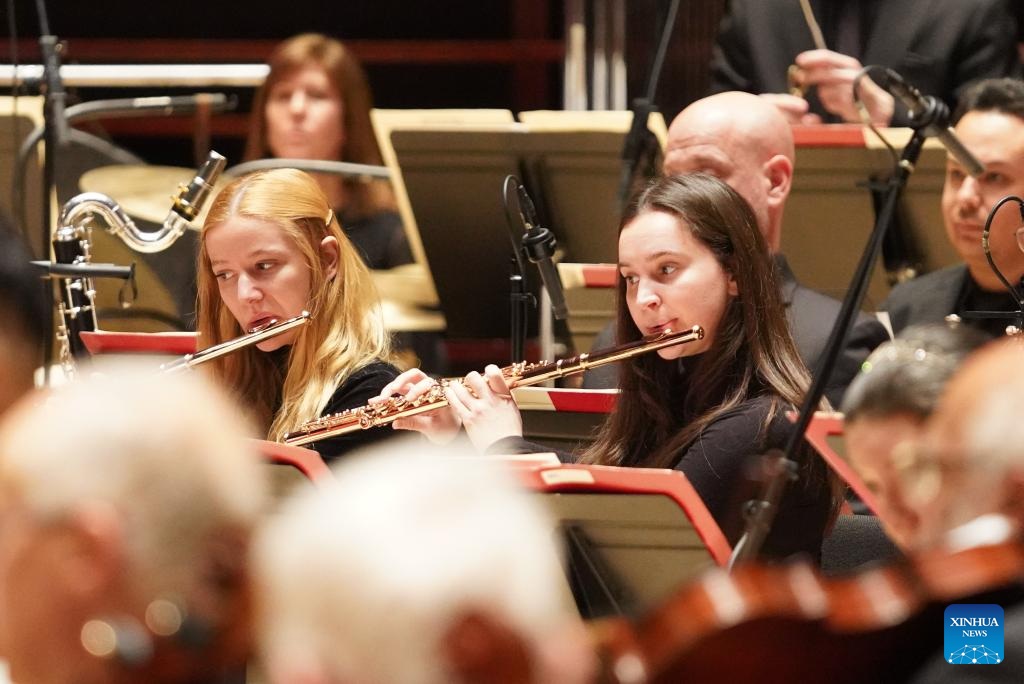 Musicians perform at a concert for the upcoming Lunar New Year at the Kimmel Center for the Performing Arts in Philadelphia, the United States, Jan. 28, 2026. The Philadelphia Orchestra and the China National Tourist Office in New York marked the upcoming Lunar New Year on Wednesday with a concert and "Ni Hao! China" tourism promotion events at the Kimmel Center for the Performing Arts. (Xinhua/Zhang Fengguo)