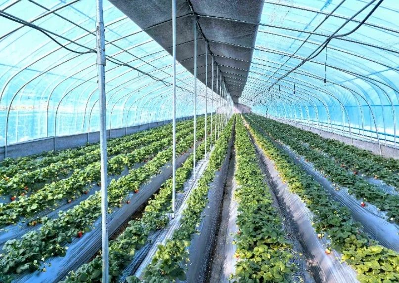 Photo shows a smart greenhouse for a type of dark-colored strawberries, referred to as "black strawberries," in Xindian township, Luohe city, central China's Henan Province. (Photo/People's Daily Online)