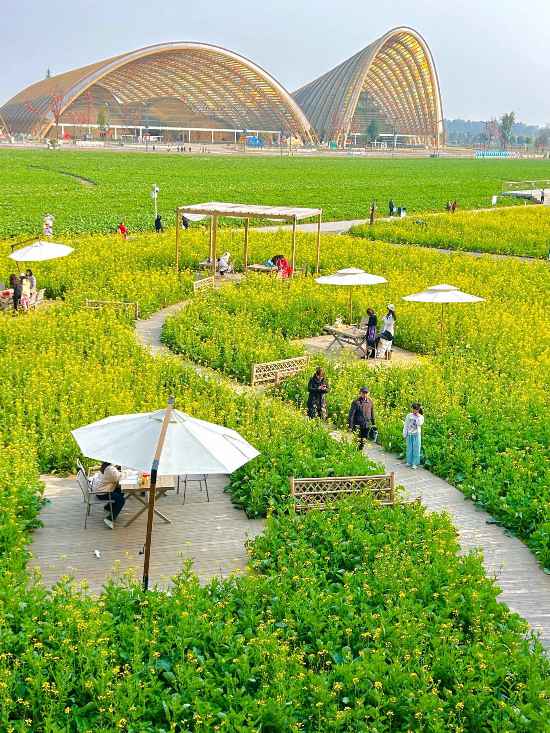 Meanwhile, at Tianfu Agricultural Expo Park in Xinjin district, Chengdu, southwest China's Sichuan Province, the scent of spicy hot pot fills the air amid blooming rapeseed flowers.