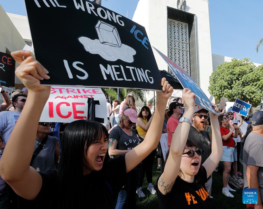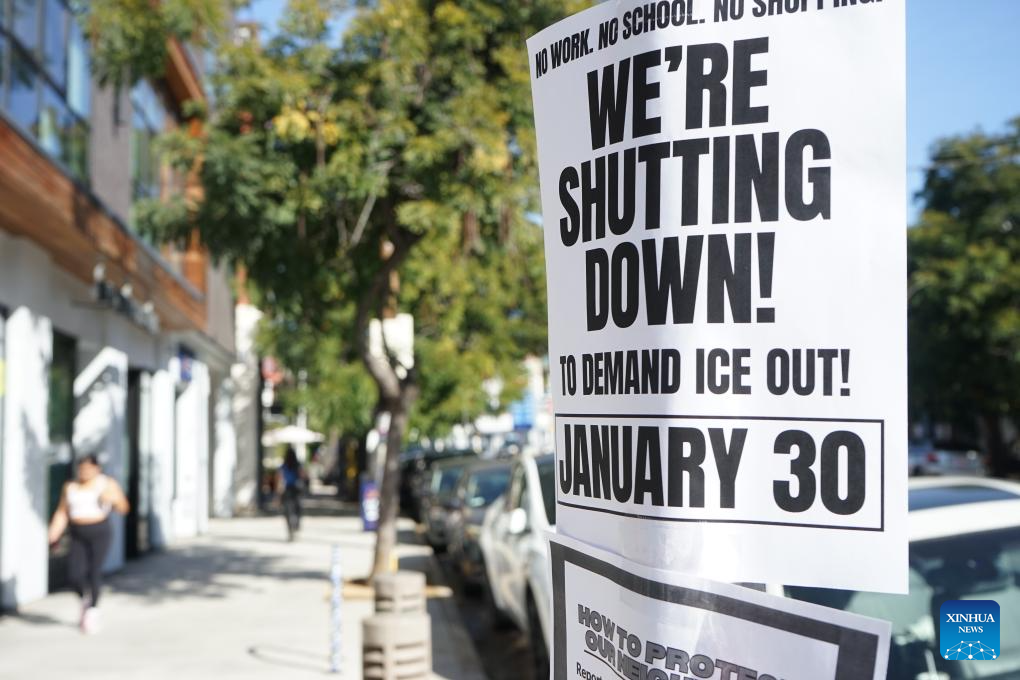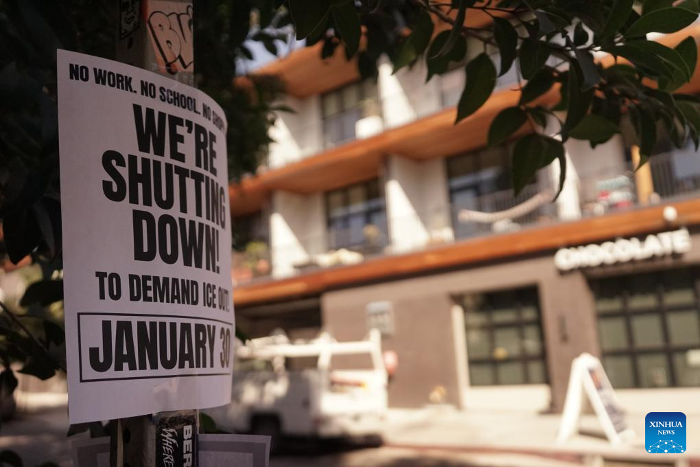 LOS ANGELES, Jan. 31 (Xinhua) -- Protesters gathered across the United States on Friday for a nationwide general strike against federal immigration enforcement operations and the recent fatal shootings by immigration agents.