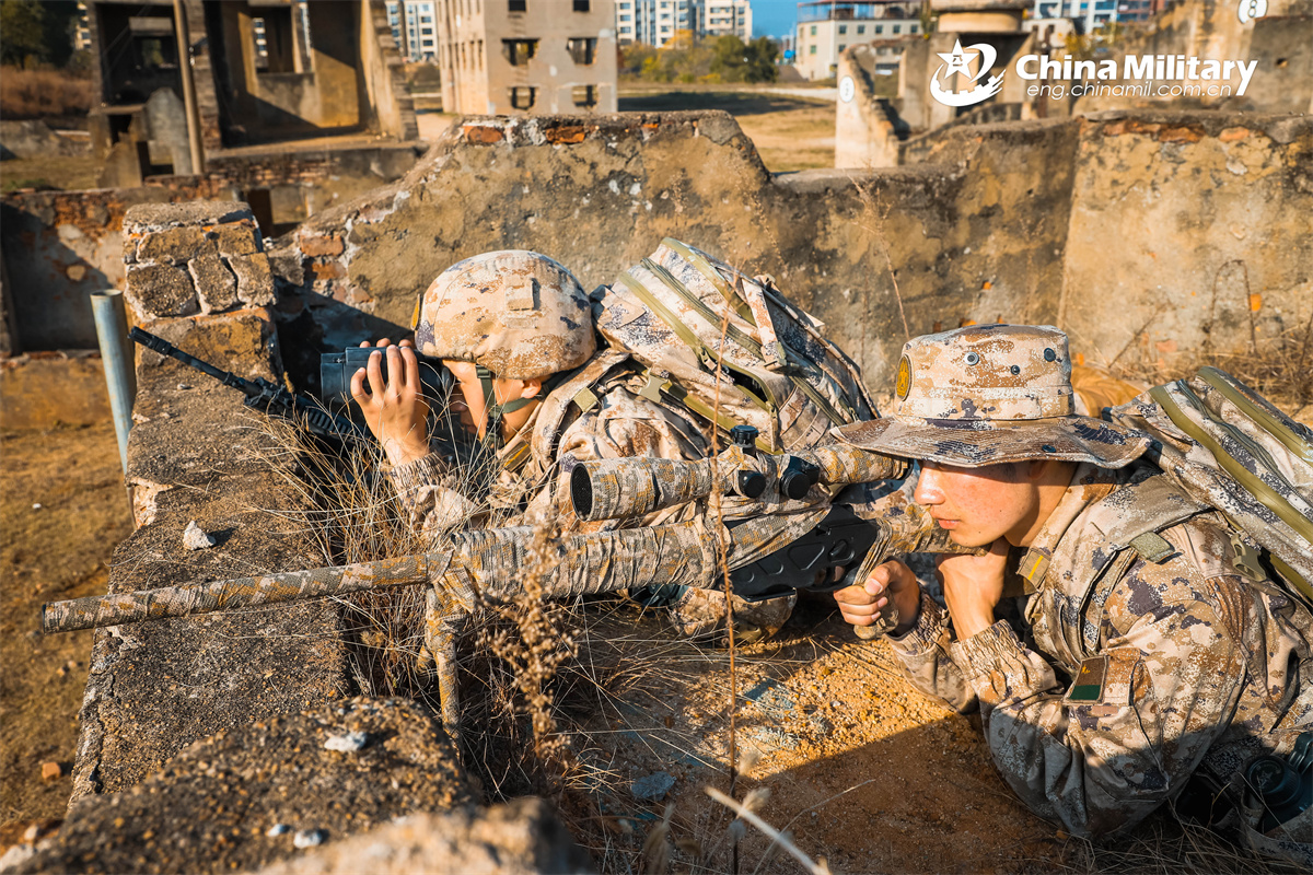 Cadets assigned to the Chinese PLA Army Infantry Academy take aim from high ground during a squad tactics training exercise. (eng.chinamil.com.cn/Photo by Liu Haorui)