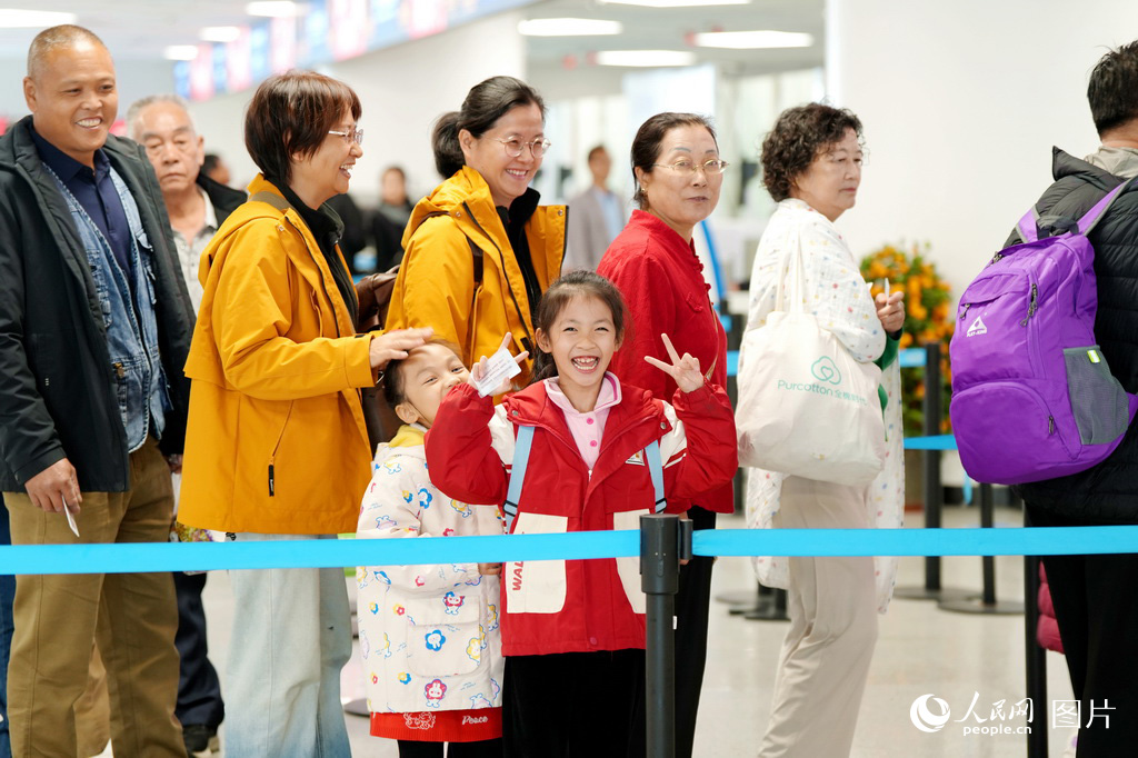 Middle school students from Zunyi, southwest China's Guizhou Province, pose for a picture at the Zhuhai land port of the Hong Kong-Zhuhai-Macao Bridge, on Feb. 2, 2026. They are going to Macao on a study tour. (People's Daily Online/Wang Yadie)