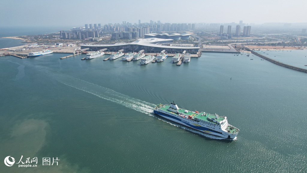 A ship leaves Xinhai Port in Haikou, south China's Hainan Province, on Feb. 2, 2026. (People's Daily Online/Meng Fansheng)
