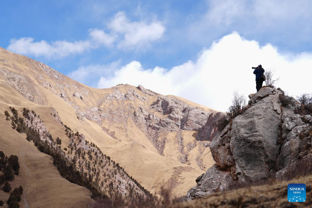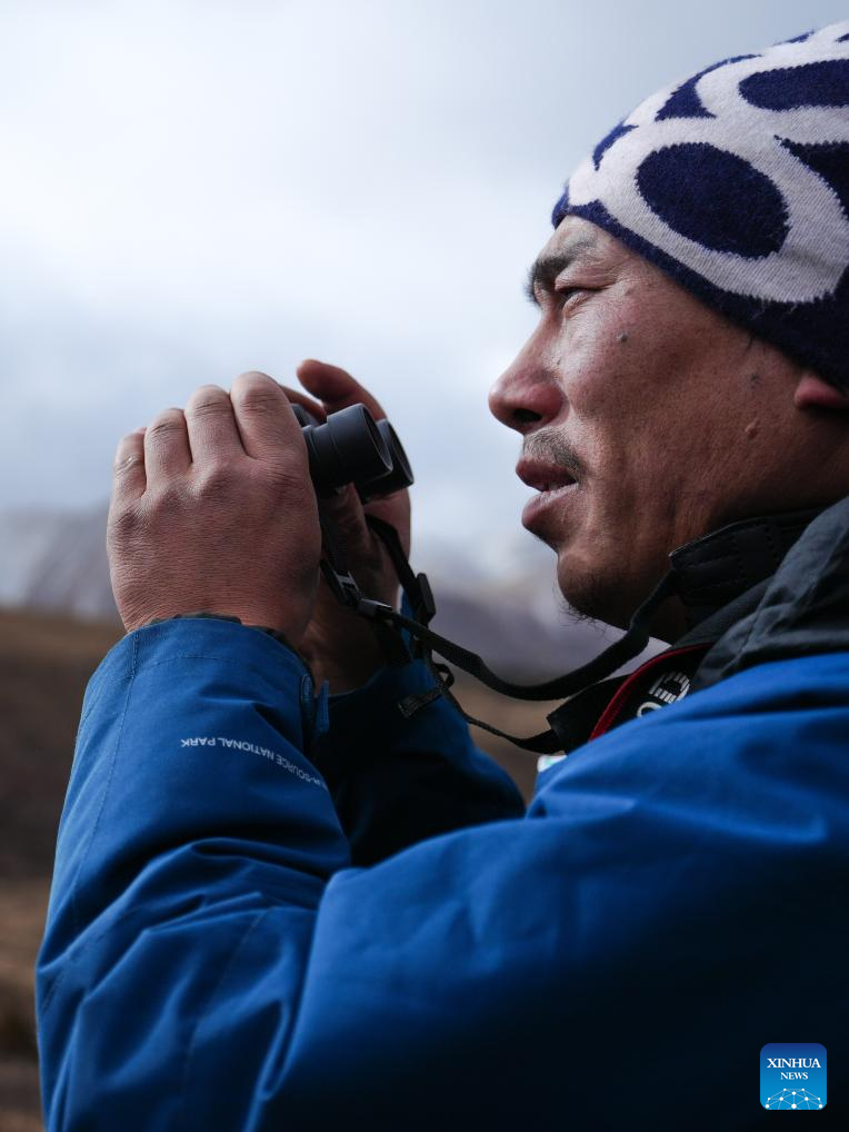 Tseten takes photos while patroling in Angsai Township of Zaduo County, Yushu Tibetan Autonomous Prefecture, northwest China's Qinghai Province, Jan. 29, 2026. (Xinhua/Qi Zhiyue)