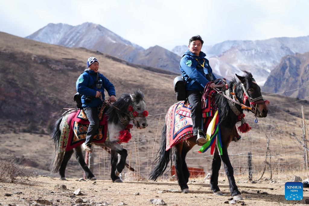Kunga patrols in Angsai Township of Zaduo County, Yushu Tibetan Autonomous Prefecture, northwest China's Qinghai Province, Jan. 29, 2026. (Xinhua/Zhang Long)