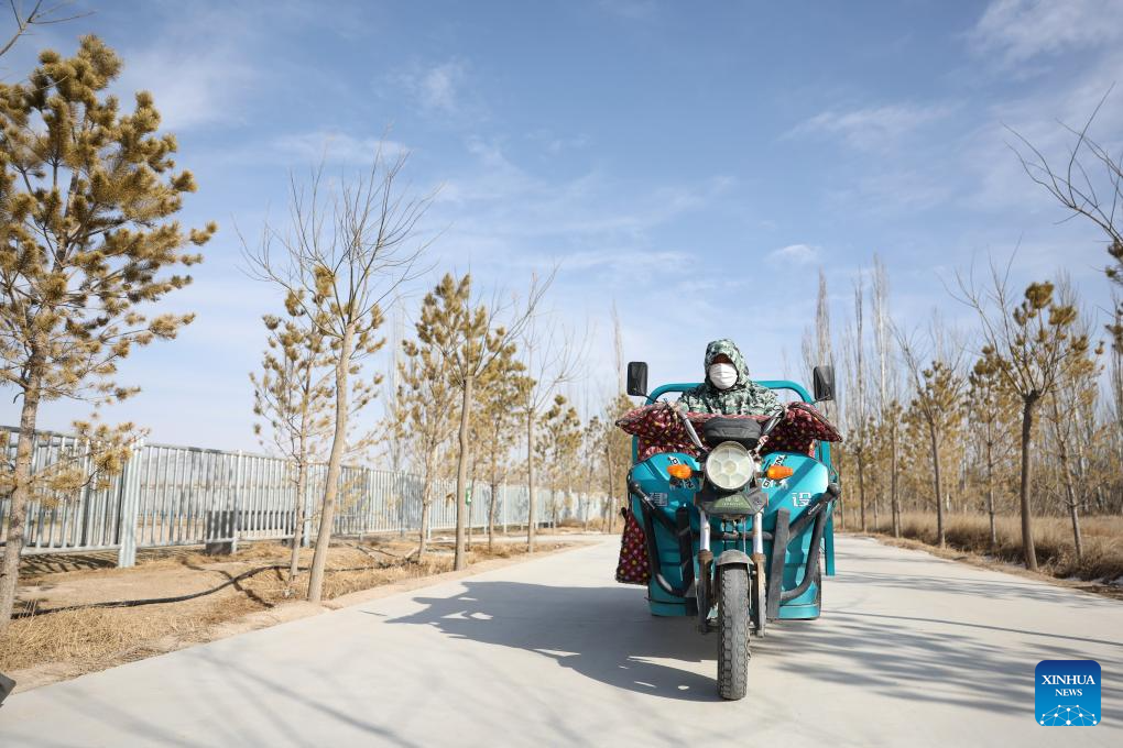 A staff delivers forage to Przewalski's horses at the Przewalski's horses breeding base of the Gansu Endangered Animal Protection Center in Wuwei City of northwest China's Gansu Province, Feb. 3, 2026. The Przewalski's horse is listed as a national first-class protected animal in China and remains endangered globally.