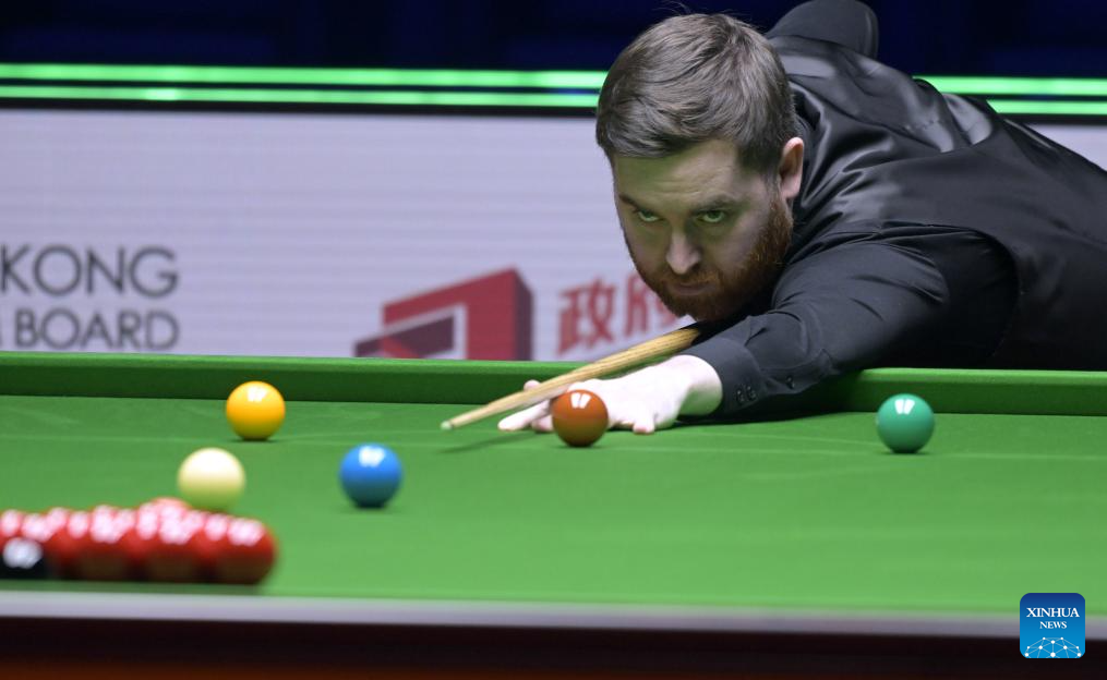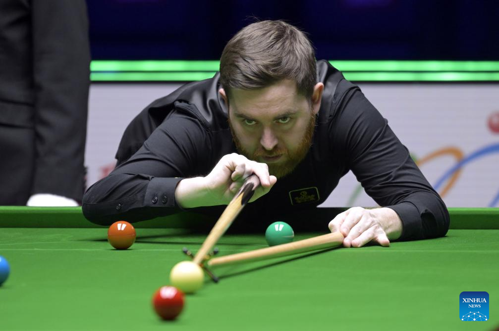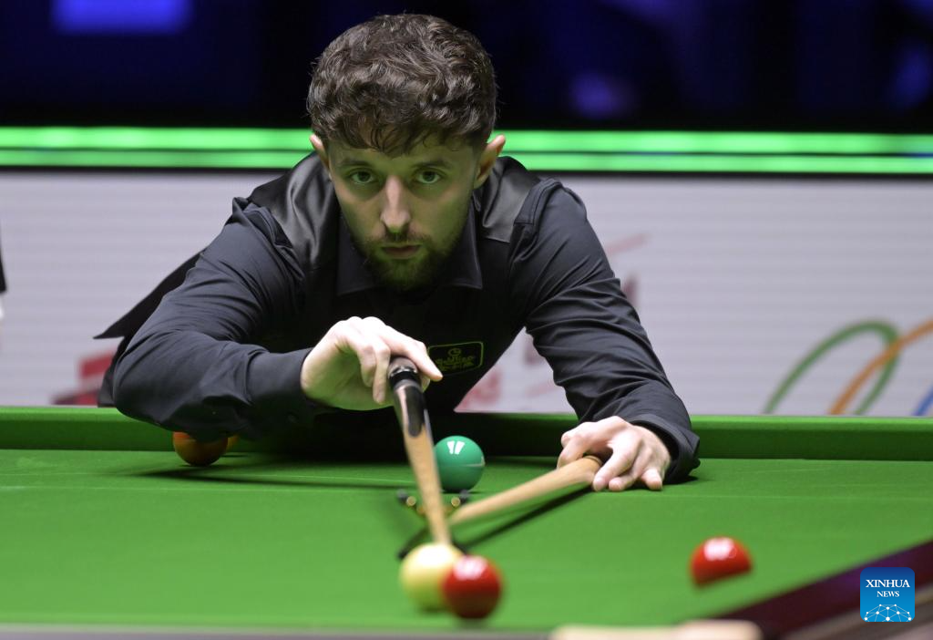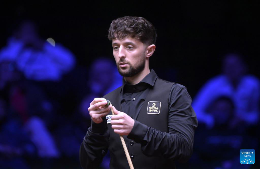 Jak Jones competes during the first round match between Neil Robertson of Australia and Jak Jones of Wales at the Snooker World Grand Prix 2026 in Hong Kong, south China, Feb. 4, 2026. (Xinhua/Lo Ping Fai)