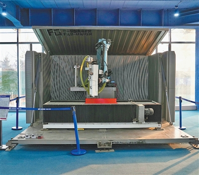 A 3D printer works at a "capsule factory" on the ground floor of the main building of Xiong'an Wings, a cultural landmark in Xiong'an New Area, north China's Hebei Province. (Photo/Zhao Weitong)