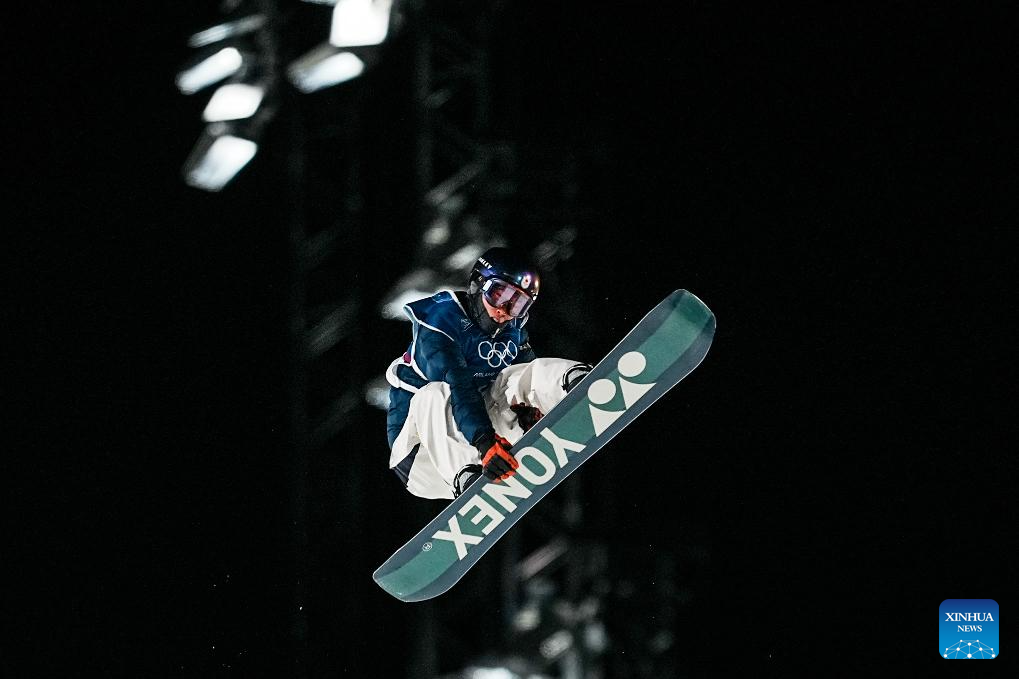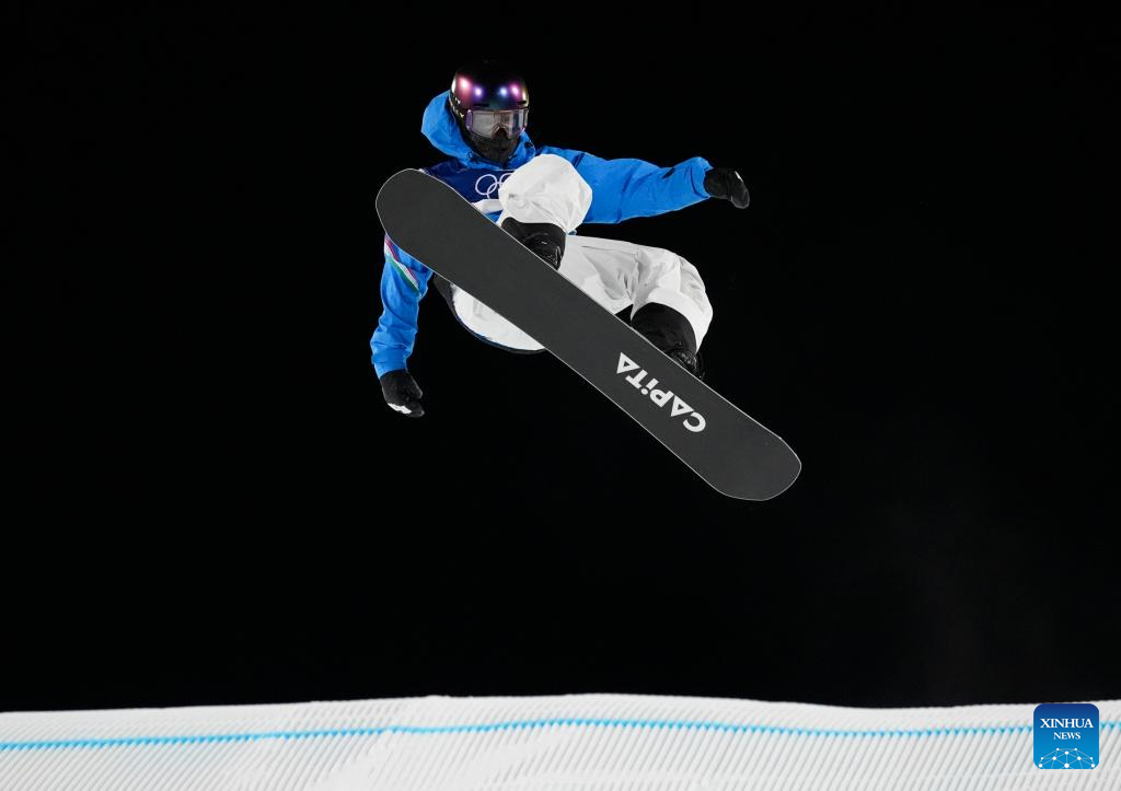 Kimata Ryoma of Japan competes during the Snowboard Men's Big Air qualification of the Milan-Cortina 2026 Olympic Winter Games in Livigno, Italy, Feb. 5, 2026. (Xinhua/Wang Peng)