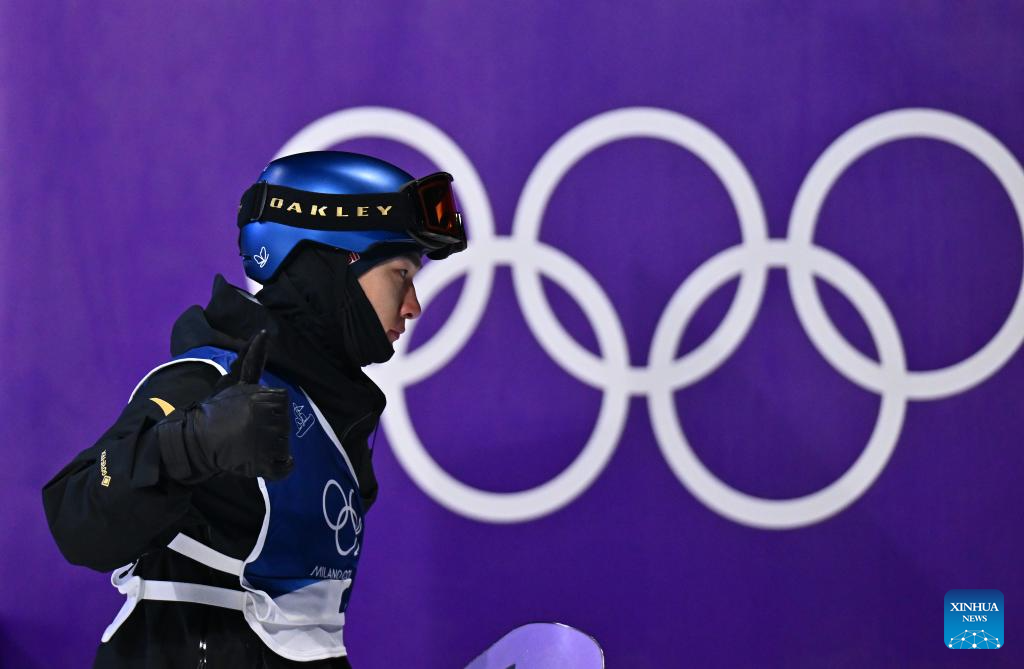 LIVIGNO, Italy, Feb. 7 (Xinhua) -- Defending Olympic champion Su Yiming delivered China's first medal of the Milan-Cortina Winter Games on Saturday, claiming bronze in a fiercely contested men's snowboard big air final defined by soaring difficulty.