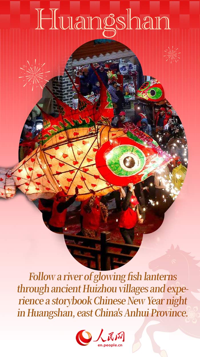 Looking for something different this Chinese New Year? Head to Huangshan in east China's Anhui Province, where a river of glowing fish lanterns lights up the ancient villages.