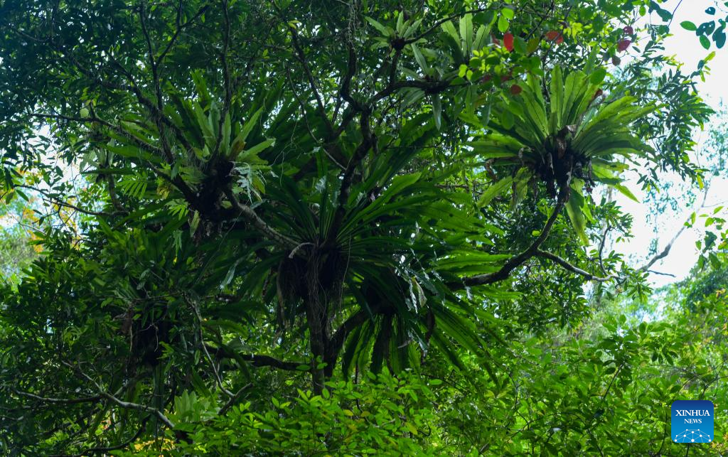This photo taken on Feb. 4, 2026 shows the alsophila spinulosa, a rare tree species at Wuzhishan section of the Hainan Tropical Rainforest National Park in south China's Hainan Province. Wuzhishan section is a core part of the Hainan Tropical Rainforest National Park. (Xinhua/Li Xiao)