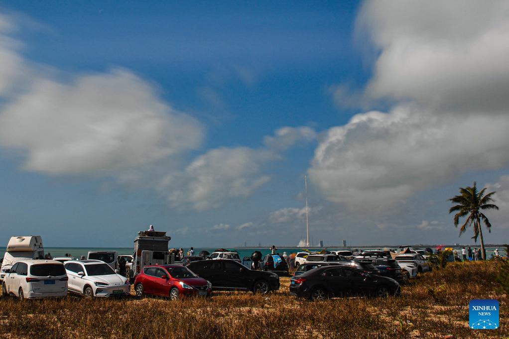A low-altitude demonstration and verification flight test for the Long March-10 carrier rocket and a maximum dynamic pressure abort flight test for the new-generation crewed spaceship system Mengzhou are successfully conducted at the Wenchang Spacecraft Launch Site in south China's Hainan Province, Feb. 11, 2026. (Xinhua/Pu Xiaoxu)