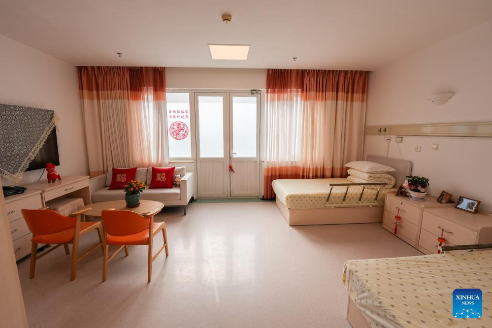 This photo taken on Feb. 10, 2026 shows a room at a senior care center in Beijing, capital of China. (Xinhua/Xie Han)
