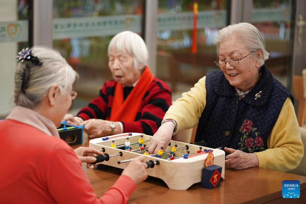 Elderly residents play games at a senior care center in Beijing, capital of China, Feb. 10, 2026. (Xinhua/Xie Han)