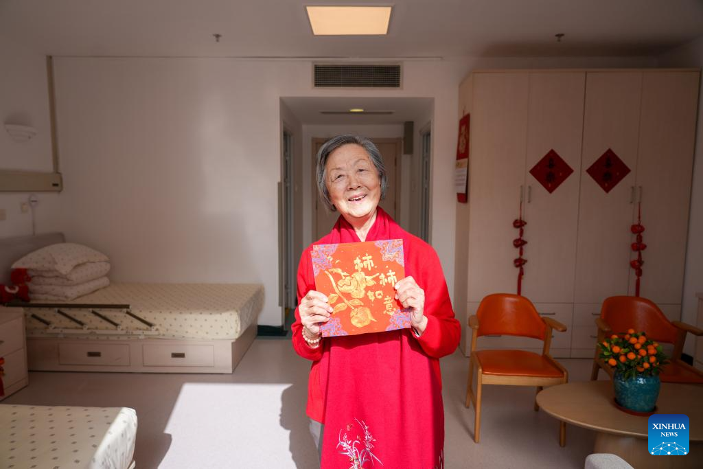 BEIJING, Feb. 11 (Xinhua) -- As the Chinese New Year draws near, a senior care center in downtown Beijing glows with festive decorations while residents carefully inscribe auspicious characters on red paper, a cherished tradition during this time of celebration.