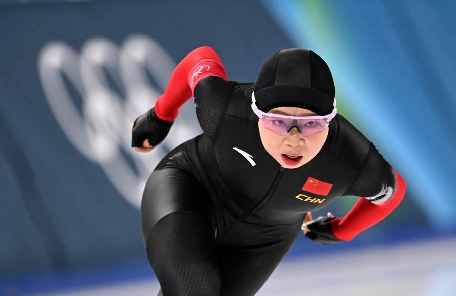 Racing in the first pair, the Chinese skater clocked seven minutes 15.71 seconds, 29.54 seconds behind the Italian winner Francesca Lollobrigida.