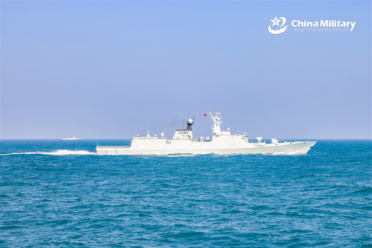 The guided-missile frigates Wenzhou (Hull 526) and Deyang (Hull 642) attached to a flotilla under the Chinese PLA Navy sail in formation during a multi-subject training exercise in early January, 2026. (eng.chinamil.com.cn/Photo by Yang Haifan)