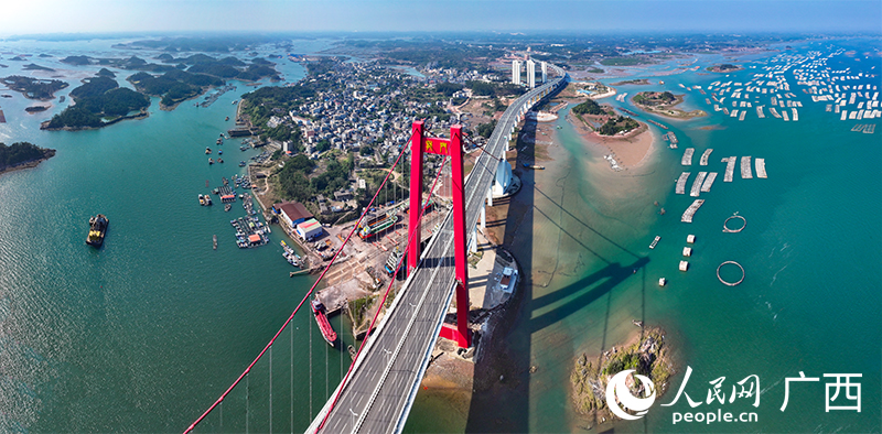 Photo shows an aerial view of Longmengang town, Qinzhou city, south China's Guangxi Zhuang Autonomous Region. (People's Daily Online/Lei Qijun)