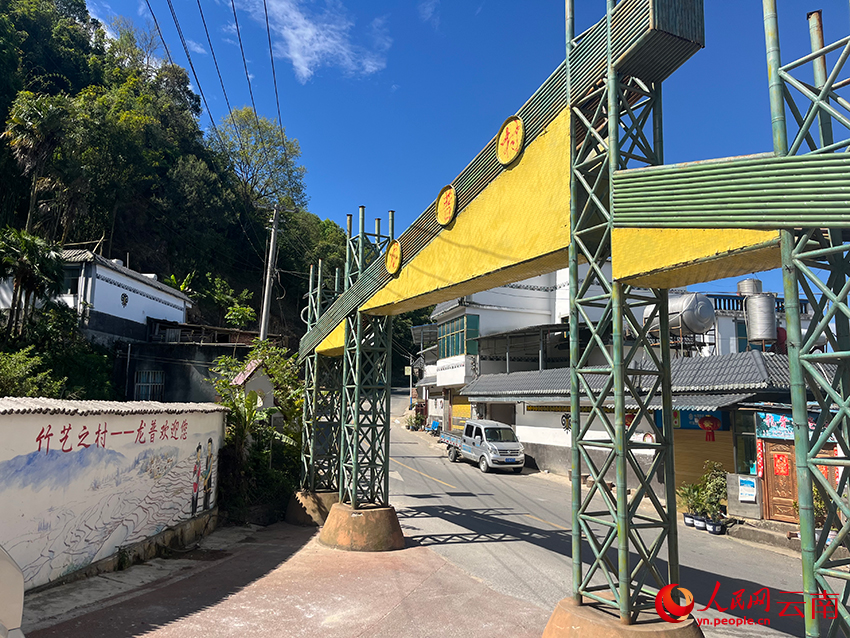 Photo shows bamboo-woven elements in Longpu village, Jiayin town, Honghe county, Honghe Hani and Yi Autonomous Prefecture, southwest China's Yunnan Province. (People's Daily Online/Yin Xin)