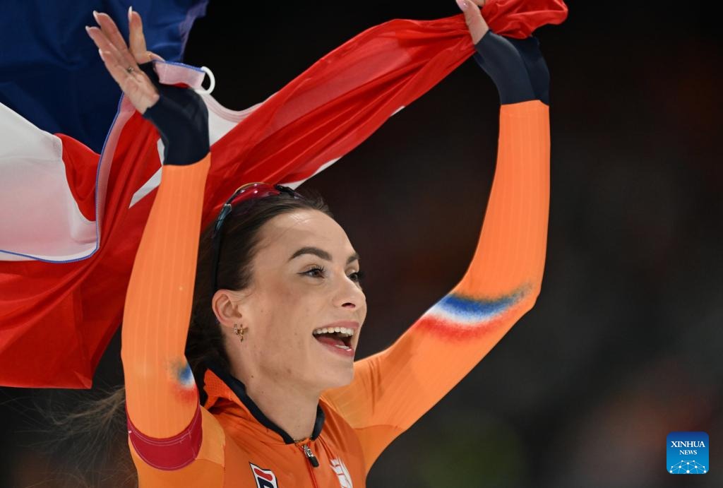 MILAN, Feb. 15 (Xinhua) -- Dutch skater Femke Kok won her first Olympic gold in the women's 500m speed skating on Sunday, setting a new Olympic record of 36.49 seconds.
