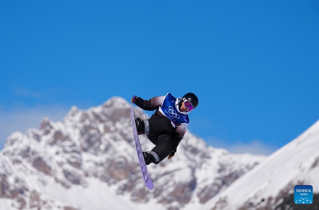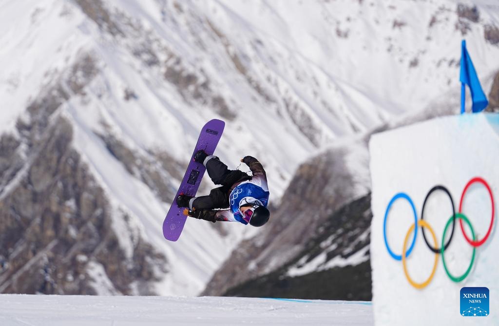 Su Yiming of China competes during the snowboard men's snowboard slopestyle qualification at the Milan-Cortina 2026 Olympic Winter Games in Livigno, Italy, Feb. 15, 2026. (Xinhua/Hu Chao)