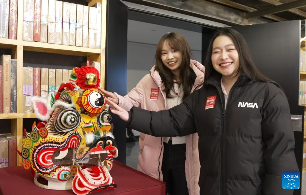 Foreign students participate in a Chinese New Year event at the Feng Jicai Museum at Tianjin University, north China's Tianjin Municipality, Feb. 10, 2026. (Xinhua)