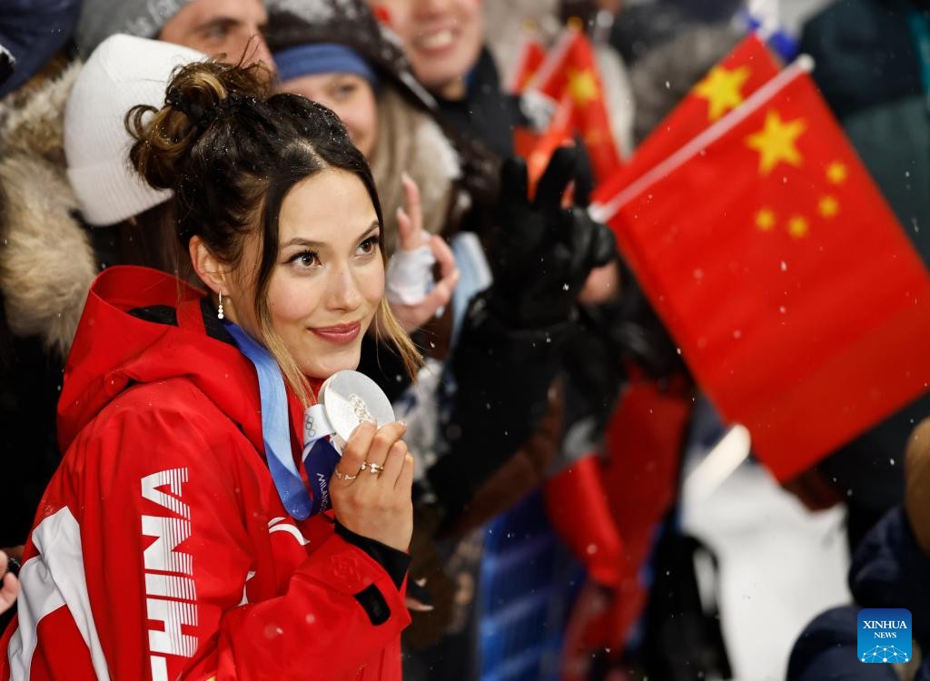 LIVIGNO, Italy, Feb. 16 (Xinhua) -- China's defending champion Gu Ailing claimed silver in the women's freeski big air at Milan-Cortina 2026 on Monday, marking a strong return to the event after a four-year absence from international competitions.