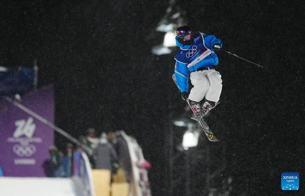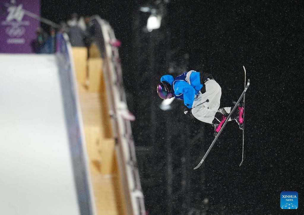Liu Mengting of China competes during the freestyle skiing women's freeski big air final at the Milan-Cortina 2026 Olympic Winter Games in Livigno, Italy, Feb. 16, 2026. (Xinhua/Xia Yifang)