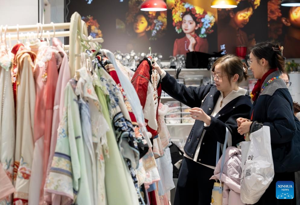 Visitors choose traditional costumes for souvenir photos at Sanfangqixiang (Three Lanes and Seven Alleys) area on the first day of the Chinese New Year in Fuzhou, southeast China's Fujian Province, Feb. 17, 2026. (Xinhua/Wei Peiquan)