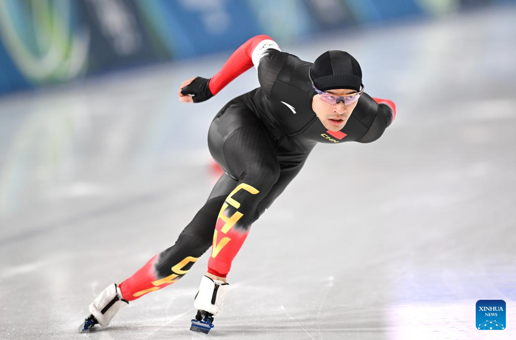 Ning Zhongyan of China competes during the speed skating men's 1500m event at the Milan-Cortina 2026 Olympic Winter Games in Milan, Italy, Feb. 19, 2026. (Xinhua/Wu Wei)