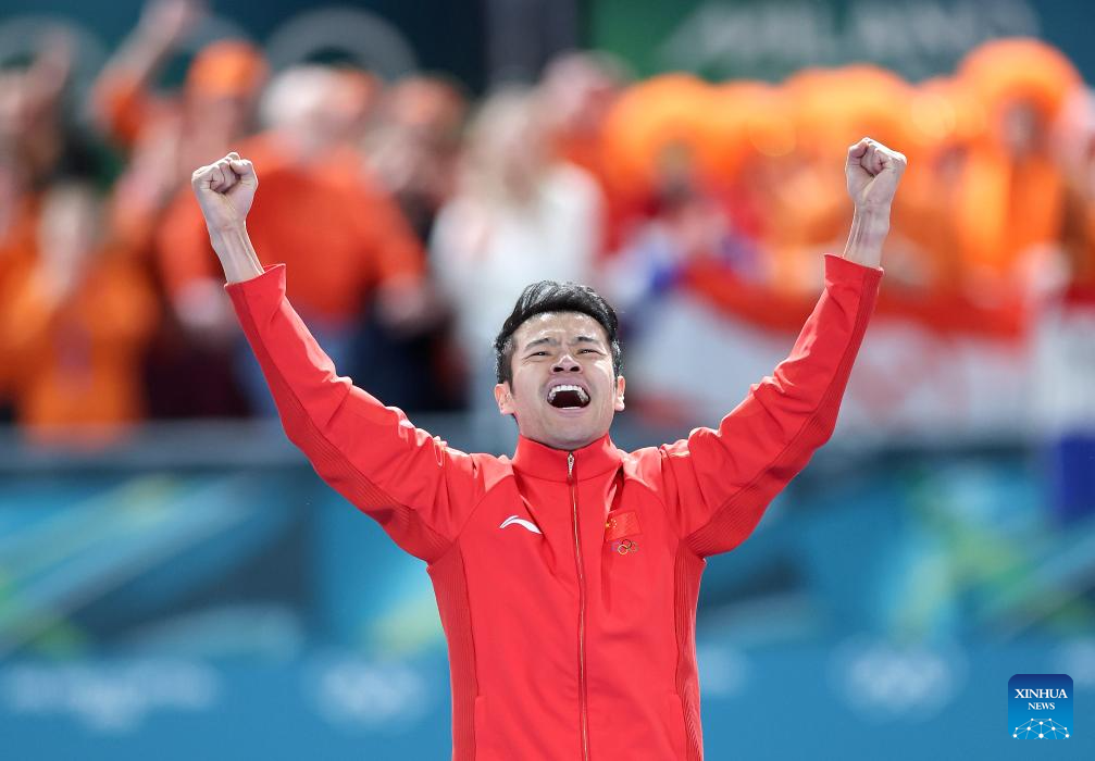 MILAN, Feb. 19 (Xinhua) -- China's Ning Zhongyan upset title favorite Jordan Stolz of the United States to win the men's 1,500m speed skating at the Milan-Cortina Olympic Winter Games here on Thursday.