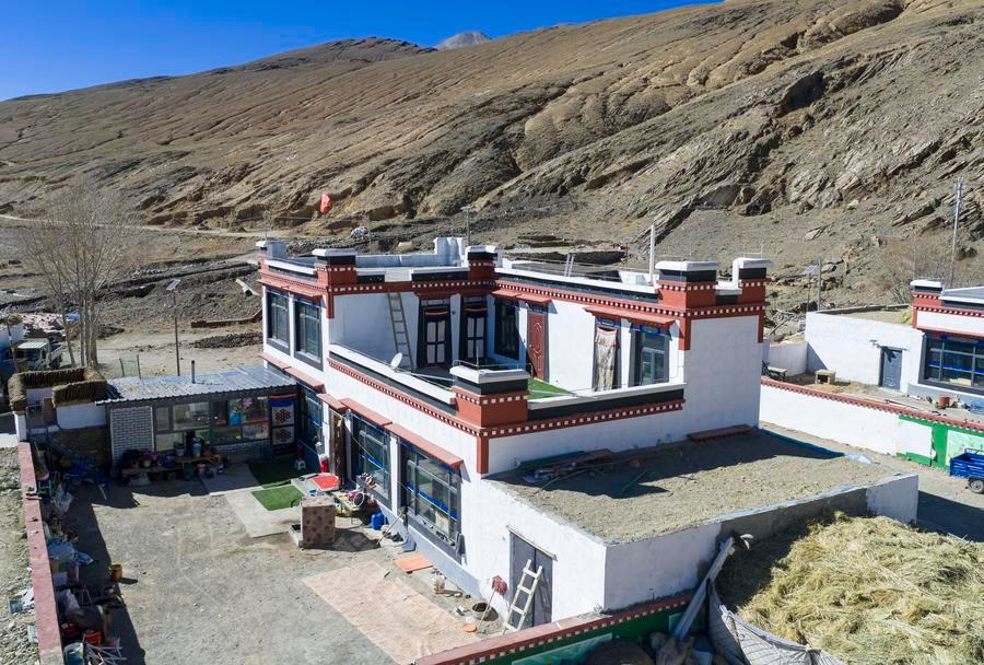 A drone photo taken on Feb. 16, 2026 shows a view of the house of Sangs-rgyas in Gurum Village of Chamco Township, Dingri County, southwest China's Xizang Autonomous Region. (Xinhua/Tenzing Nima Qadhup)