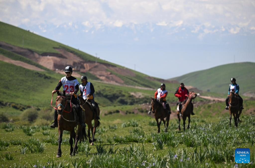 Riders compete during the Super Derby International Equestrian TREC Endurance on Silk Road in Zhaosu County, northwest China's Xinjiang Uygur Autonomous Region, May 30, 2025. (Xinhua/Hu Huhu)