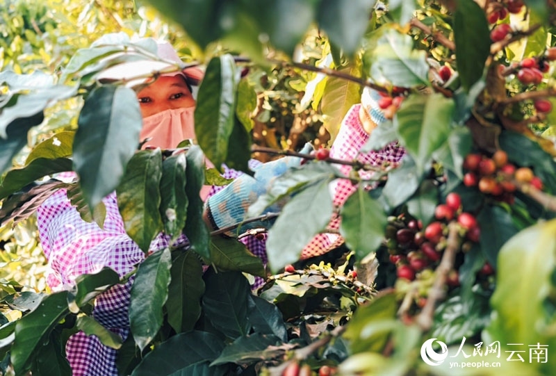 In late January at Rongkangda coffee estate in Shuangjiang county, Lincang city, the harvest was in full swing. Luo Xiaofang, 48, picked over 60 kilograms of fresh coffee cherries daily and earned more than 100 yuan per day.