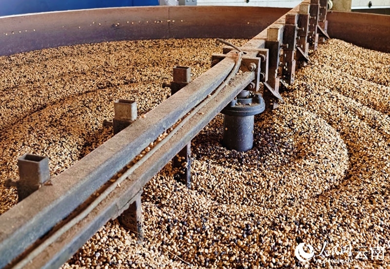Coffee beans are dried by machine in Lincang city, southwest China's Yunnan Province. (People's Daily Online/Yin Xin)