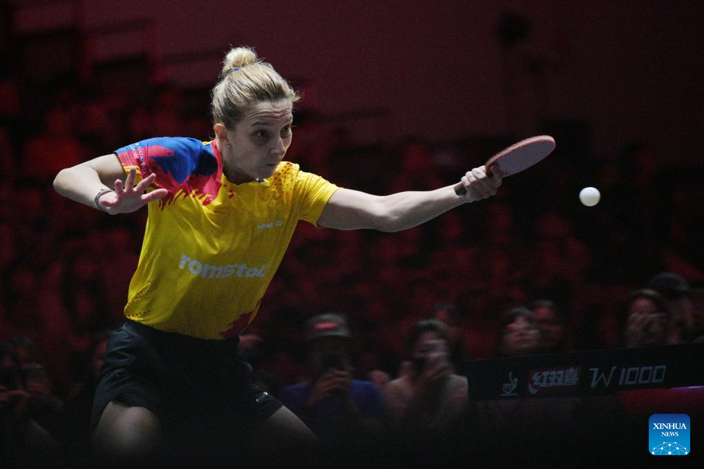 Elizabeta Samara of Romania hits a return during the women's singles round of 32 match between Sun Yingsha of China and Elizabeta Samara of Romania at the World Table Tennis (WTT) Singapore Smash 2026 in Singapore on Feb. 25, 2026. (Photo by Then Chih Wey/Xinhua)