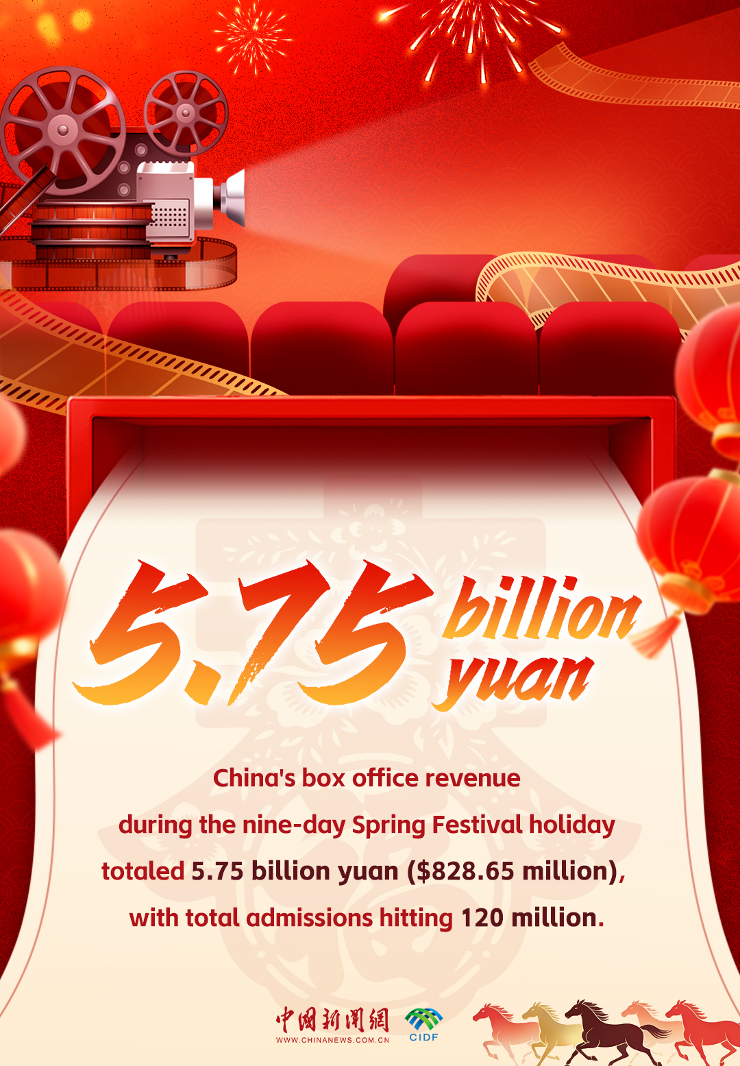 Service consumption further reinforced the upward trend. China's box office revenue during the nine-day holiday totaled 5.75 billion yuan ($828.65 million), with total admissions hitting 120 million.