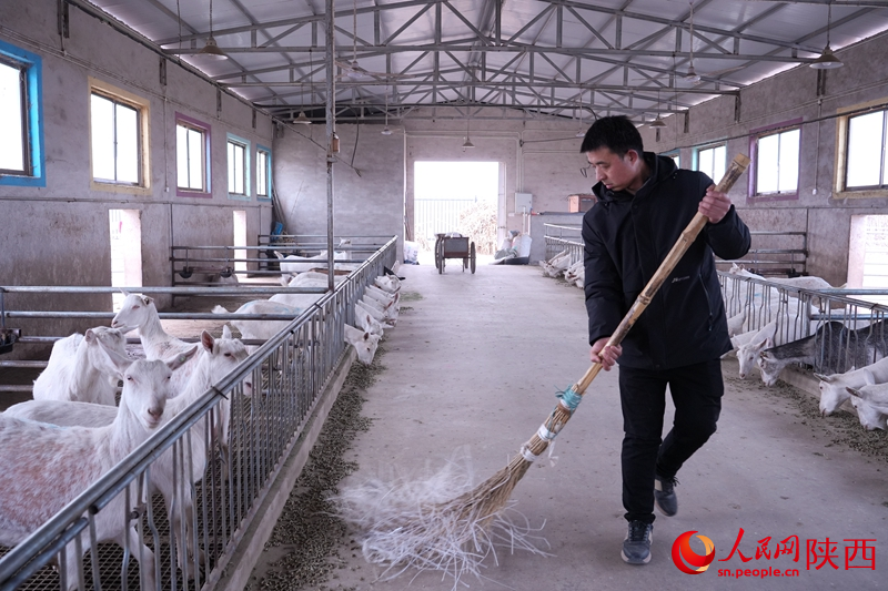 Xiang Bin, a farmer in Shuangyang village, Fuping county, northwest China's Shaanxi Province, works at his goat farm. (People's Daily Online/Li Zhiqiang)