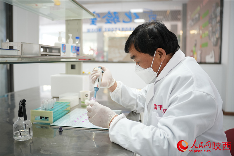 A technician at the dairy goat service center in Liuji township, Fuping county, northwest China's Shaanxi Province, conducts sample testing. (People's Daily Online/Li Zhiqiang)