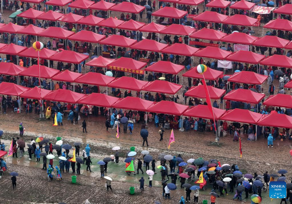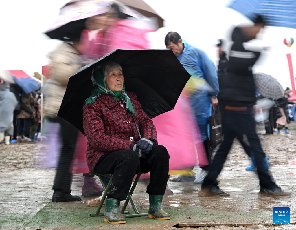 The Majie Quyi Fair, well attended despite the bad weather, boasts a history of over 700 years, and was inscribed in the first national intangible cultural heritage list in 2006. (Xinhua/Zhu Xiang)