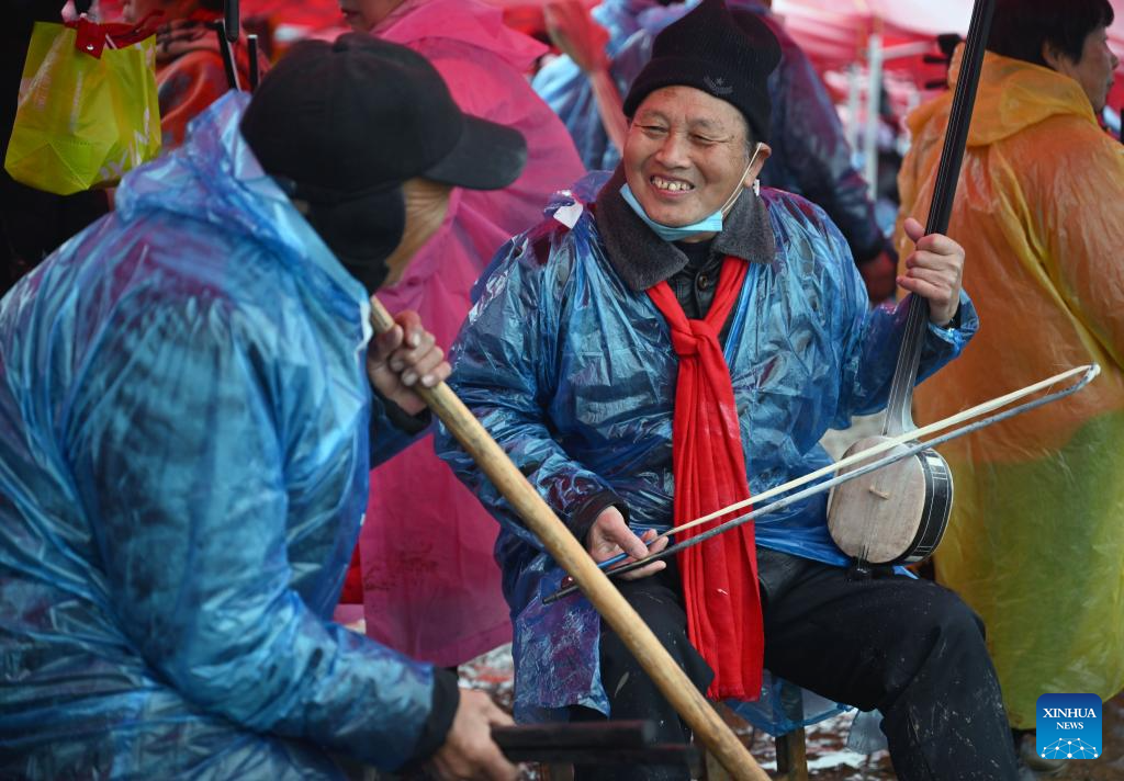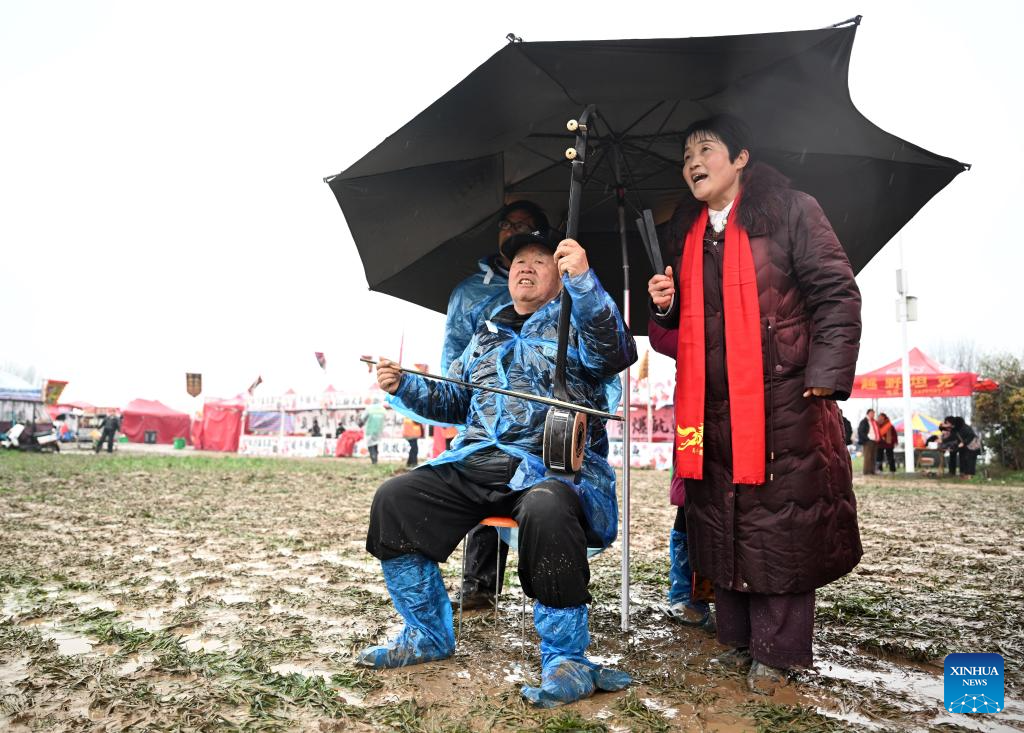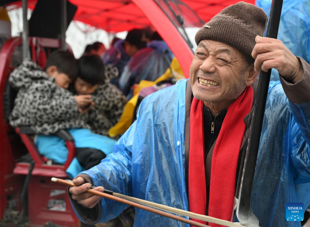 The Majie Quyi Fair, well attended despite the bad weather, boasts a history of over 700 years, and was inscribed in the first national intangible cultural heritage list in 2006. (Xinhua/Li Jianan)