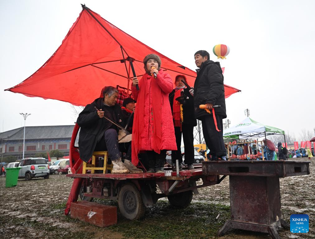 Folk artists perform during the Majie Quyi Fair at Majie Village of Baofeng County, central China's Henan Province, March 1, 2026.