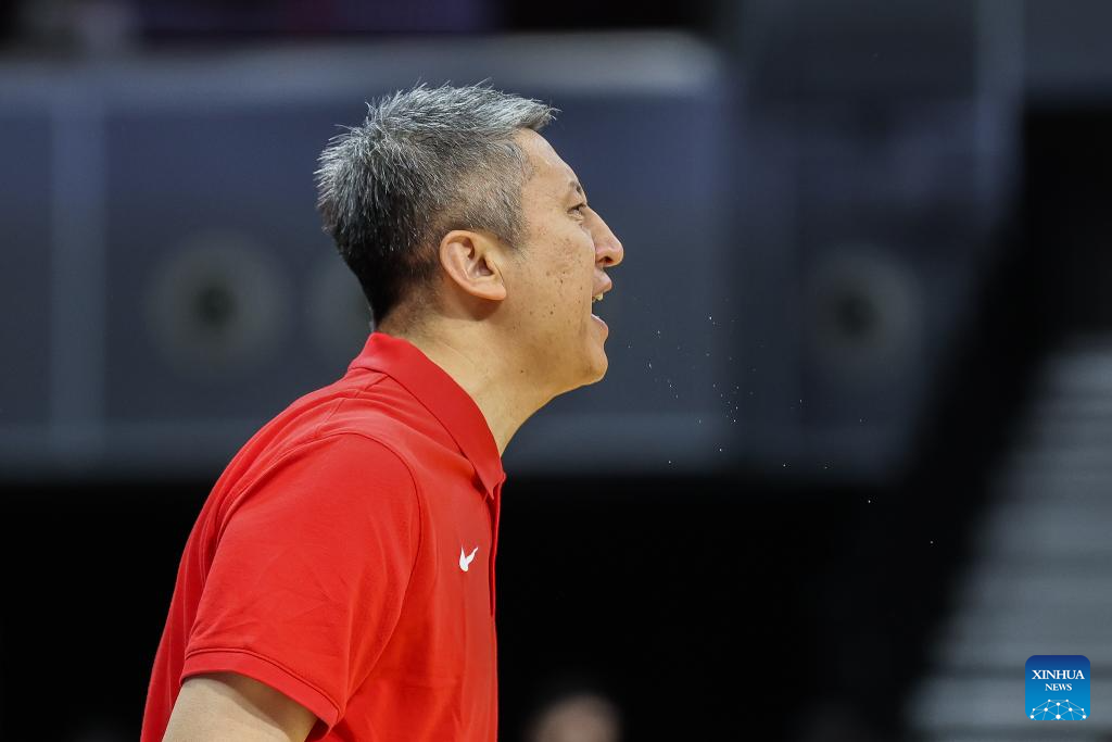 Coach Guo Shiqiang of China shouts instructions during the match between China and Chinese Taipei at the FIBA World Cup Asian Qualifiers in Pasay City, the Philippines, on March 1, 2026. (Xinhua/Rouelle Umali)