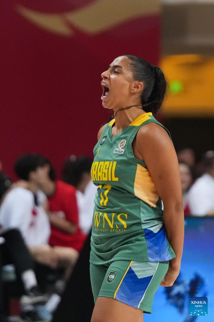 Carina dos Santos Martins of Brazil celebrates during a warm-up match between China and Brazil in Changsha, central China's Hunan Province, on March 4, 2026. (Xinhua/Chen Zhenhai)