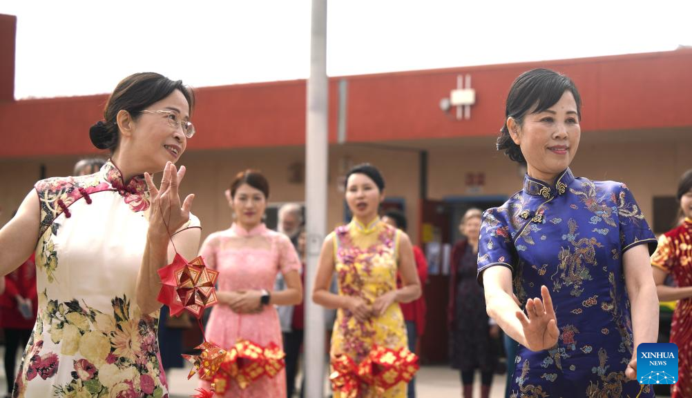 People in traditional Chinese Qipao (cheongsam) perform during a Lantern Festival celebration at a school in San Francisco, the United States, March 3, 2026.