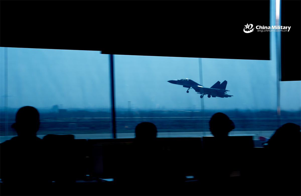 Under the direction of air traffic controllers, a J-11 fighter jet attached to a unit with the air force under the Chinese PLA Western Theater Command soars into sky during a flight training exercise on February 26, 2026. (eng.chinamil.com.cn/Photo by Yu Zeqi)